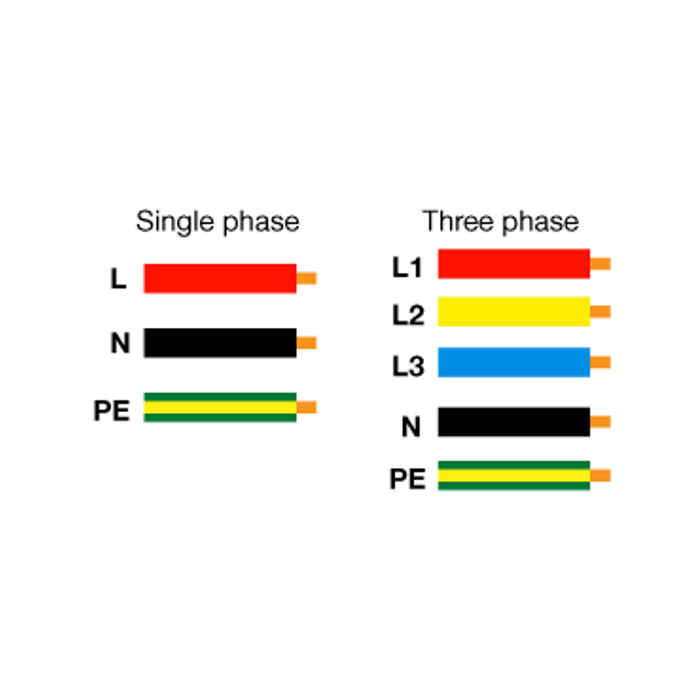 - Wires: Three phase wires + optional neutral + ground (e.g., 3 or 4 wires).